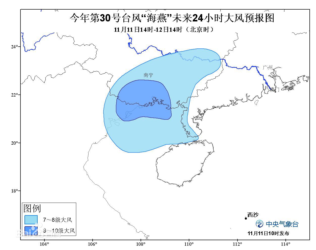 ▪11月4日上午3时30分,日本气象厅对其发出海上烈风警报。上午9时15分,日本气象厅将其升格为热带风暴,并命名为海燕。上午11时,联合台
